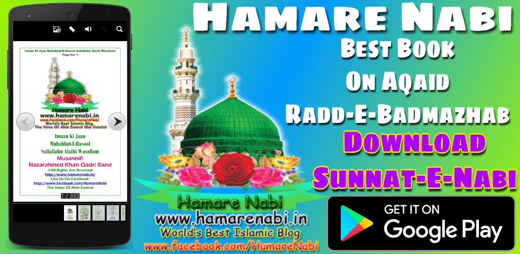 Hamare Nabi World’s Best Islamic Blog. The Voice Of Ahle Sunnat Wal Jama’at Presents Android Application Of Hamare Nabi Official Blog. We Have Completed 75,00,000+ Visits Worldwide. Insha ALLAH Will Be Completing 1,00,00,000 Visits In Next Few Months. Our Aim Is To Spread The True Message Of Our Beloved Prophet Muhammad Sallallahu Alaihi Wasallam (Peace Be Upon Him) In The Light Of Quran-E-Kareem & Hadees With Authentic References. Help Us In Khidmate Deen. Please Share This App With All. Understand The Aqaid-E-Ahle Sunnat In The Light Of Quran-E-Kareem & Hadith-E-Nabwi. Radd-E-Badmazhab. Clear All Your Doubts.